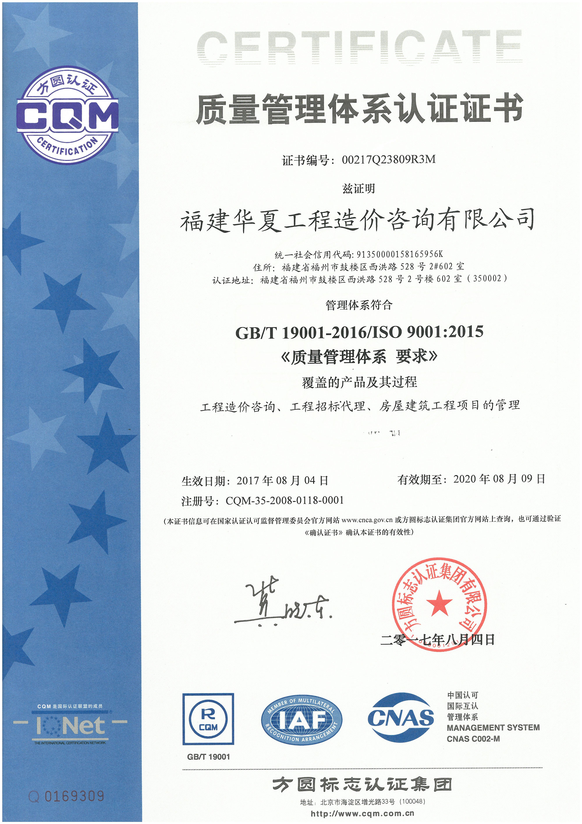 公司严格执行ISO9001:2000质量管理体系的要求,合理设置机构、明确岗位职责、规范业务流程、采用三级质量控制和质量稽查制度,建立了完善的质量控制制度。