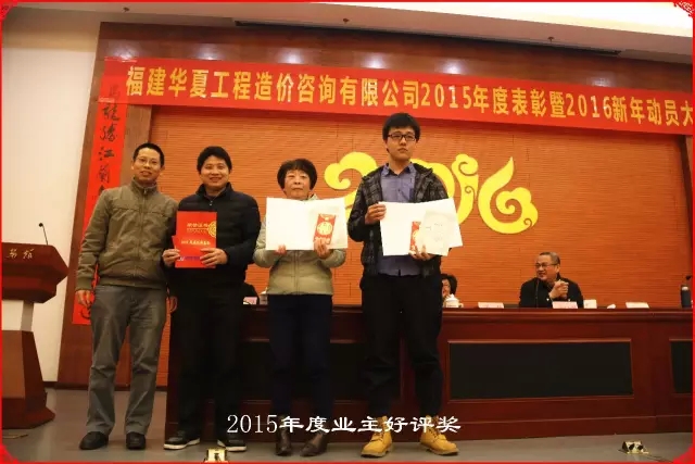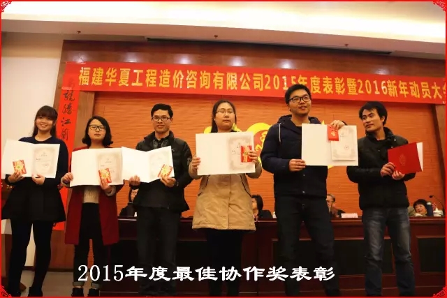 福建华夏工程造价咨询有限公司2015年度优秀表彰,极大的鼓舞了士气,并激励着每一位员工,获奖人员在分享心得的时候,纷纷表示感谢华夏这个优秀的平台,感谢在这个建筑行业不景气的一年,华夏如温室般的保护了每一位员工,让大家依然可以骄傲地绽放自己的梦想;感谢华夏领导们的悉心教导与培育,让大家得以一步一步成长。感谢华夏的每一位同事,在这个温暖的大家庭中,不分你我,相扶相持;今后将加倍努力工作,继续为公司的发展贡献自己的一份力量!