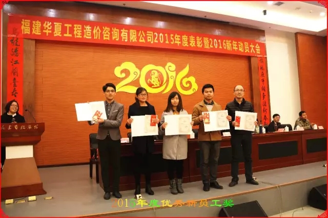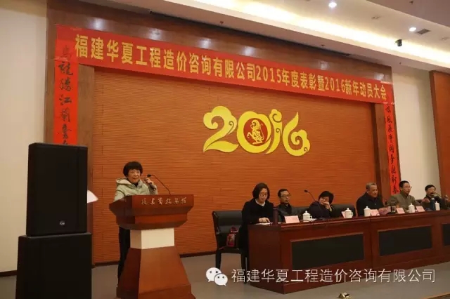 2016年2月27日,福建华夏工程造价咨询有限公司全体员工济济一堂,在公司代建的最美档案馆新馆中隆重召开2015年年度表彰暨2016年新年动员大会,会议分为2015年度先进表彰和2016年度工作动员两个环节进行。