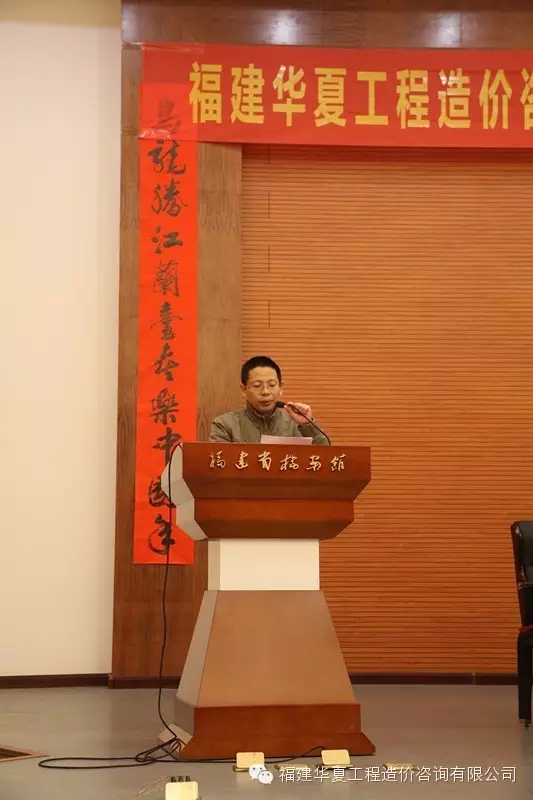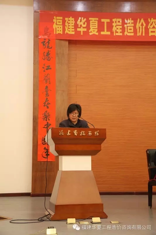 颜总工从华夏的“昨天、今天、明天”来为华夏作精彩的解说。同时也充分肯定了华夏成立15年来的成长与发展;她表示:华夏坚持了传统和精神,守住了我们的“专业”,荣誉榜上的一块块奖牌,业主们的一句句肯定,是华夏的执着地坚持做最专业的造价,才造就了华夏今日的辉煌;华夏还守住了“诚信”,在这金钱风靡,追求名利的时代,多少企业在这洪流中迷失了自己的根本,而华夏,十五年如一日,始终坚持诚信这个宝贵的信条,于细微处赢得人心,成为业主最值得信赖,最专业的咨询顾问;华夏守住了我们的“质量和品质”,在专业上精益求精,在服务上力求完美,正是华夏这十五年来始终注重质量和品质,专业上满足客户的需求,赢得客户的赞誉;华夏还守住了“责任”,在这个法制、经济全面深化大改革的年代,华夏勇于承担起推动行业健康发展的责任,成为行业的翘楚。相信在未来的十五年,华夏将越来越好,将成为在座每一位的骄傲!祝愿福建华夏工程造价咨询有限公司在新的一年再创佳绩!